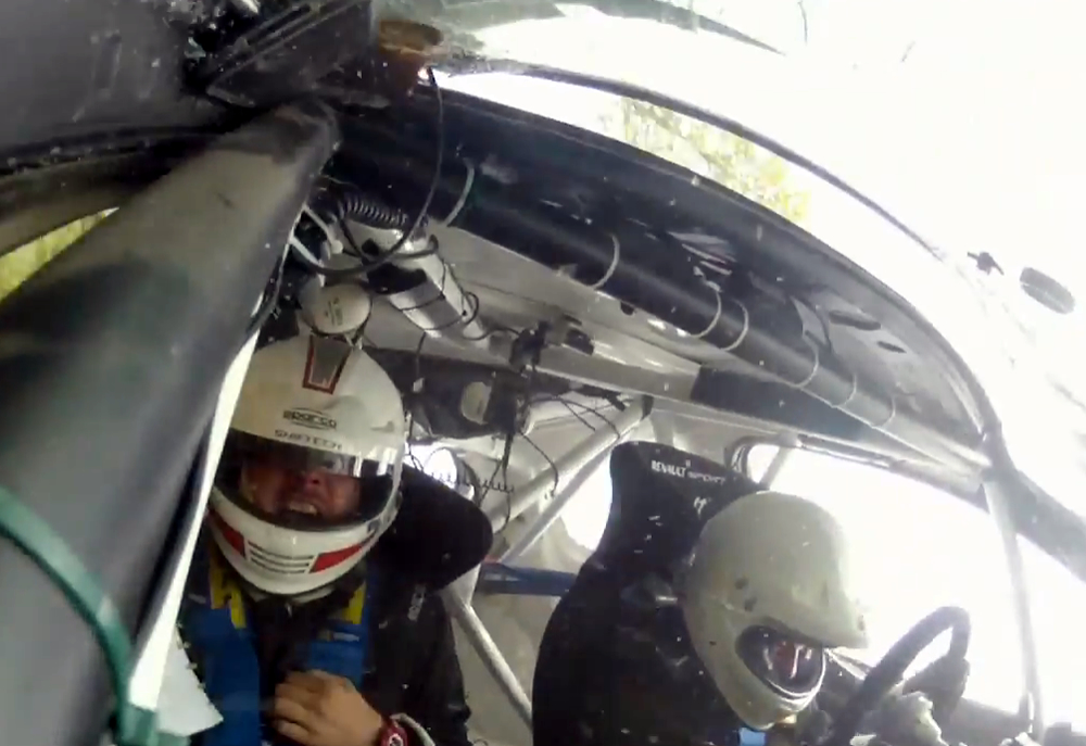 Si ven el video el choque es muy fuerte y aterrador, es cuando podemos ver en el video la importancia de todos los elementos de seguridad, más aún el roll cage que le salva al vida a los pilotos al proteger el auto de tan fuerte impacto.