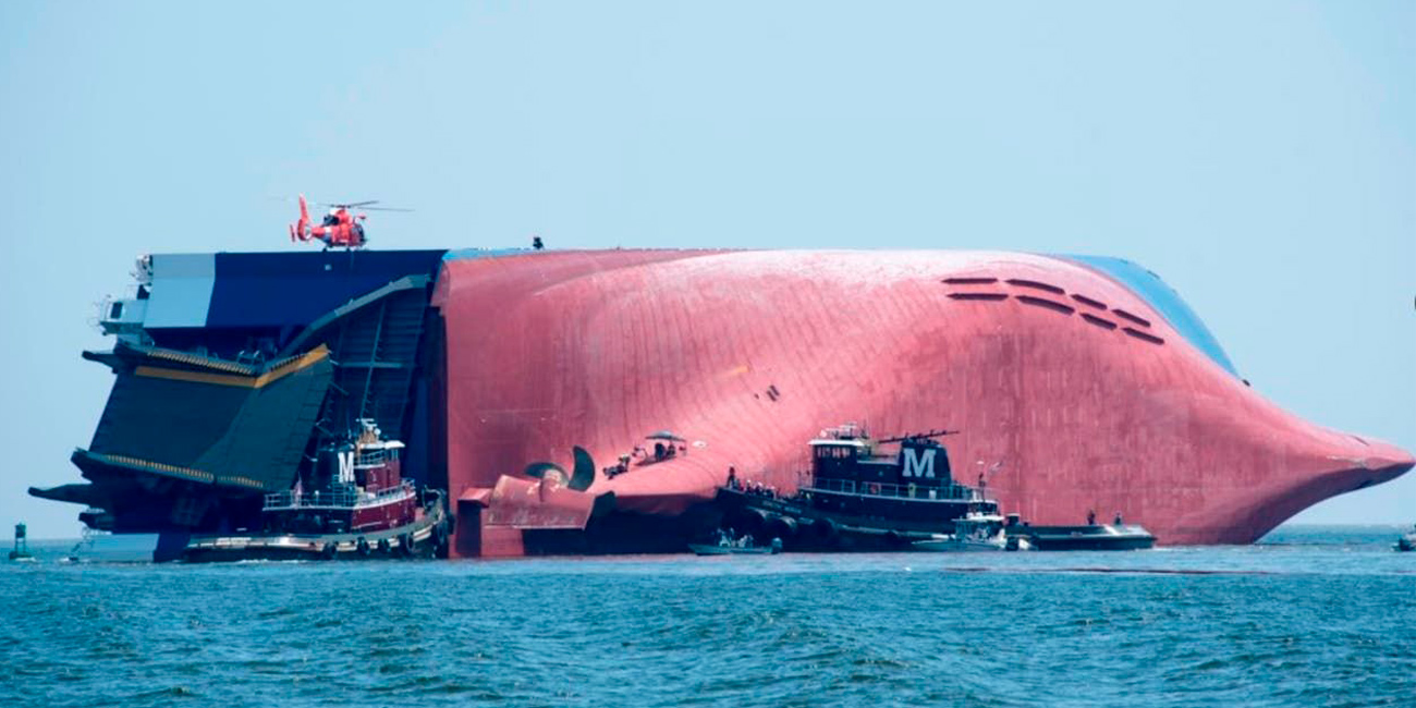 En septiembre del año pasado el buque navegaba con destino al puerto de Maryland y en el trayecto se produjo un incendio que provocó un movimiento inesperado y el barco quedó volcado hacia un costado sin posibilidades de continuar su ruta.