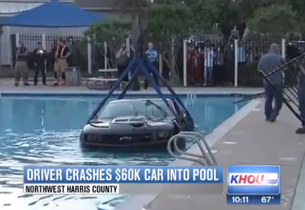 Este amigo compro su Camaro LZ1 que le costo unos $60.000, pues apenas en sus primeros kilómetros como nuevo el conductor y producto del exceso de velocidad perdió el control y fue a dar a una piscina con su auto recién comprado. Esto sucedió en Texas, en Harris County. 580 caballos de fuerza para nadar en una piscina.