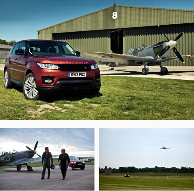 El nuevo Range Rover Sport se enfrenta al desafío de una carrera versus un avión tipo vintage Spitfire, es una carrera muy pareja a pesar de que en teoría el avión es ligeramente más potente.