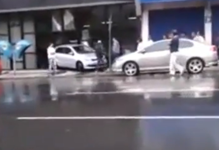 Una conductora de un Volskwagen Polo intenta dos veces parquear su auto, mira el video y averigua como lo hace y termina su intento :