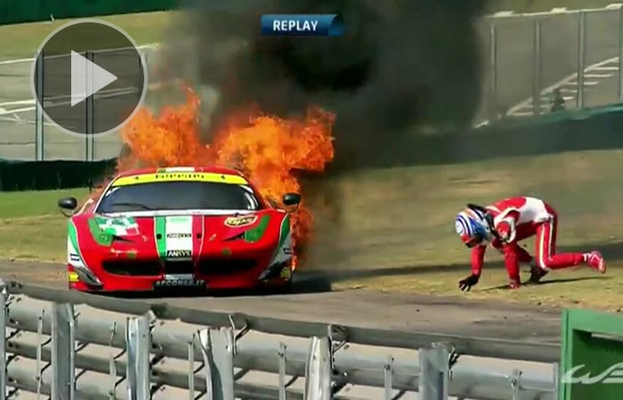 El domingo durante las seis Horas de Sao Paulo, estas se detuvieron brevemente cuando el Ferrari 458 Italia del piloto Toni Vilander No. estalló en llamas justo antes de la marca de dos horas.